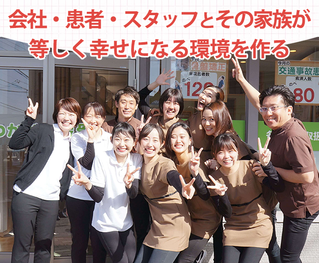わかば接骨院には、患者様に感動を与え、患者様の人生をより豊かにするために、伴走していきたい!そんな仲間が集まっています。