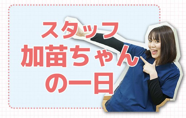 わかば接骨院は午前の方が患者さんが多いので、朝からハイテンションの加苗ちゃん。
