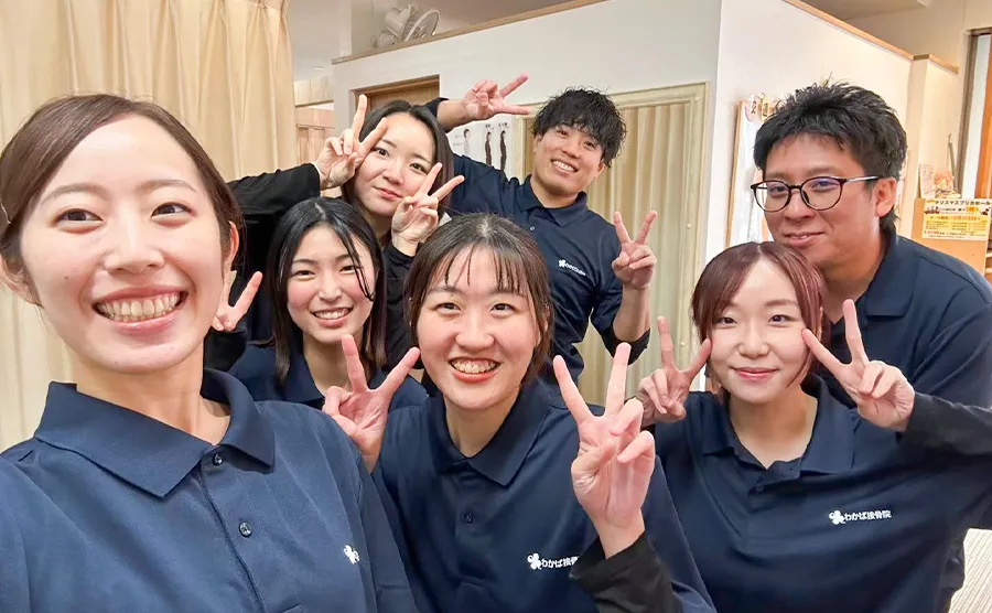 私たちは常にチームワークを大切にしています。わかば接骨院は仲間の個性を認め、お互い助け合う毎日笑顔があふれる職場です。ぜひ一度社内をご見学いただき、実際に目で見て、肌で感じていただくことをお勧めします。